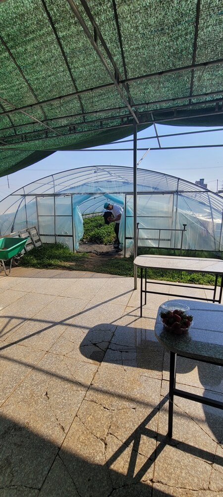딸기 따기 체험을 하는 비닐하우스모습입니다. 3월 중순에 체험을 했는데 비닐하우스 안이 상당히 덥더라고요. 체험을 가실 분들은 반팔티를 입고 가시길 추천드립니다.