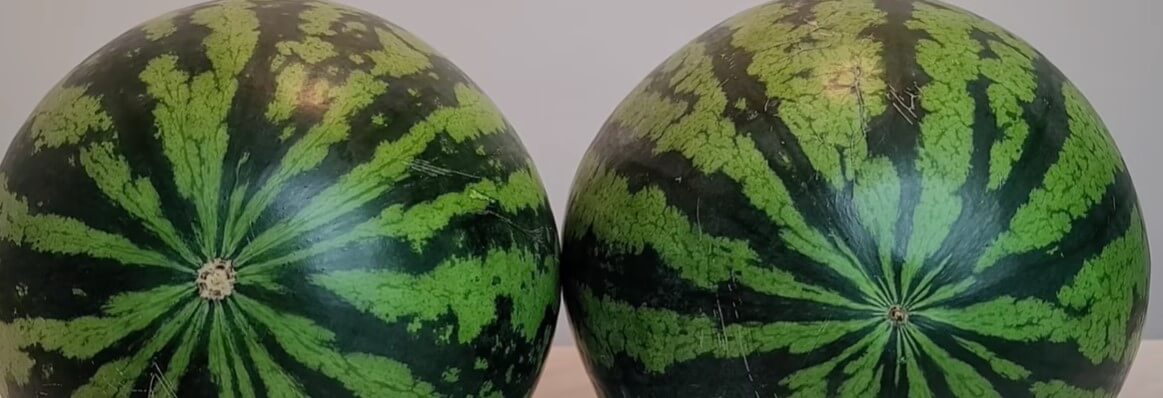 1. 수박에도 암수가 있다고 합니다. 수박뒤쪽을 보면 구분이 가능한데요. 배꼽이 작은 암컷이 더 맛있습니다. 아래사진의 오른쪽 수박의 배꼽이 훨씬 작죠. 이렇게 배꼽이 작은 암컷 수박이 더 맛있다고 합니다.