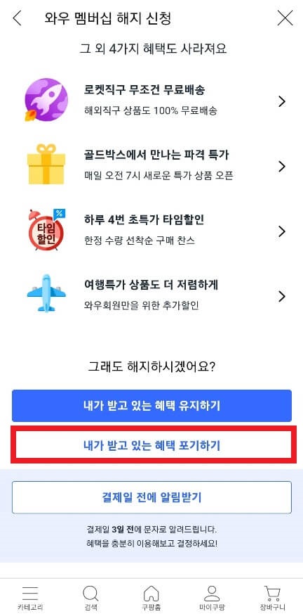 쿠팡 와우 멤버십 해지 방법